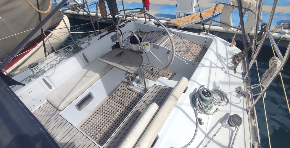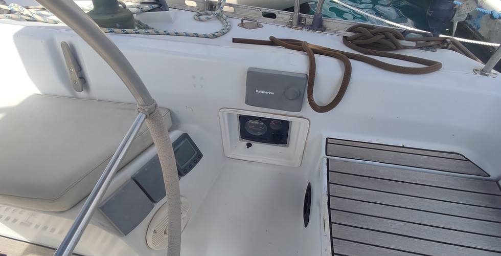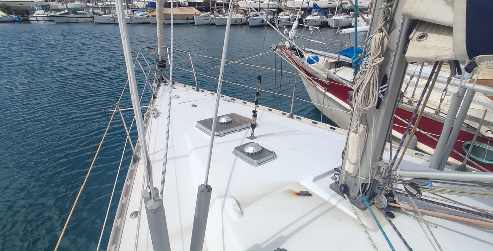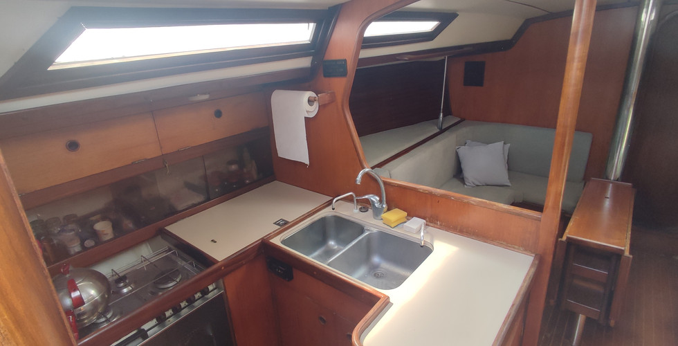 There is a seamanlike second head, ingeniously installed on the centreline between both aft cabins, behind the companionway stairs and in front of the engine compartment. But this feature was cancelled by the previous owner.