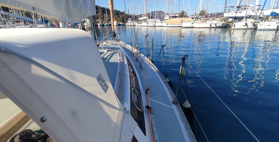 The hull is made of fiberglass. Generally, a hull made of fiberglass requires only a minimum of maintenance during the sailing season. And outside the sailing season, just bottom cleaning and perhaps anti-fouling painting once a year - a few hours of work, that's all. The last bottom paint (Sea Jet 34) has been done in June 2023. There is no osmosis on the hull. There is no reported damage such as a tornado, storm, crash, and/or grounding on board.