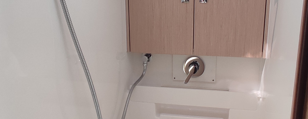 The upgraded 80hp Yanmar diesel engine (57 hp is standard) with SD 60 sail drives, the boat delivered 7.1 knots at 2,500 rpm (cruising speed) and 8.1 knots at 3,200 rpm (wide-open-throttle). The engine worked only 170 hours during the Slovenia to Marmaris trip in February 2023. The engine was serviced by Gena yachting at Alacati / Turkey. All of the winches on board and the swim platform are electric operated. The anti fouling paint was applied in February 2023 by Gena Yachting at Alacati / Turkey. The boat has Elvström in-mast main and self tacking furling Genoa sails which provides to make easy solo sailings for crew.